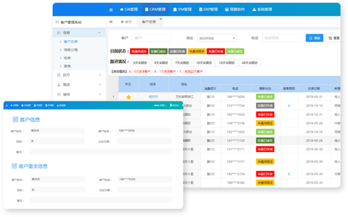 客服管理模塊中植入的提醒功能,可定時、定期或按周期提醒客服回訪;投訴功能可以進(jìn)行售后維護(hù)。