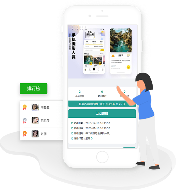 專業(yè)第三方微信投票評(píng)選活動(dòng)制作平臺(tái),3分鐘即可制作一場(chǎng)活動(dòng),已穩(wěn)定運(yùn)行853天,創(chuàng)建活動(dòng)超200萬(wàn)場(chǎng),無(wú)任何隱性消費(fèi)。